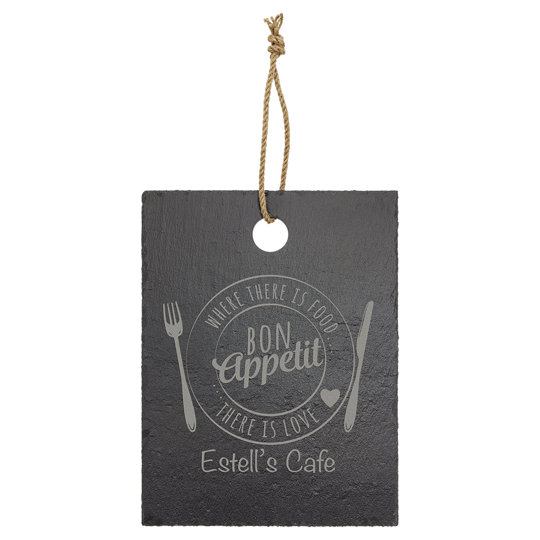 This laserable Slate Stone Decor piece makes a great corporate or personal gifts! Customize them with your choice of engraving! Each Piece varies slightly in exact shape and color, these are real slate so no two are identical. Comes with rope style string to hang. 11 1/2 x 8 3/4″ Rectangle.
