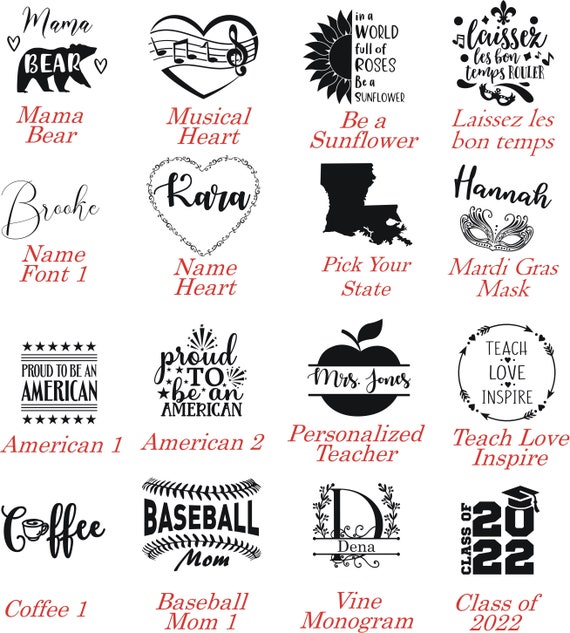 If you have your own SVG image, we would be happy to engrave it for you as long as it doesn’t violate any copyright laws. You can also search Etsy or Google for your own SVG files to send to us. We do ask that you send the file over to us BEFORE ordering so that we can ensure that it will engrave well, but in most cases we can.