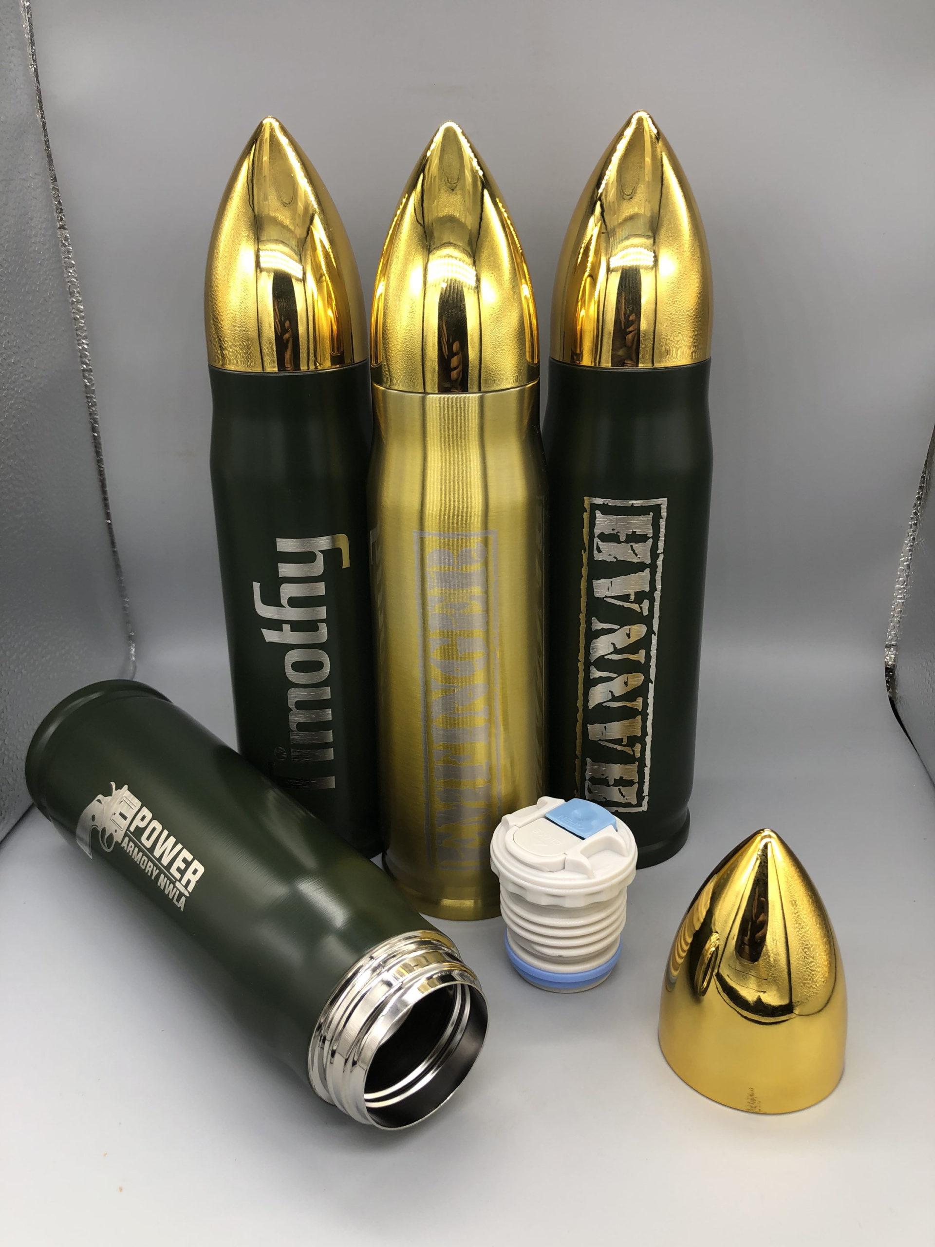 We currently offer 2 fonts: Bold Font is shown with the name “Timothy” in the sample photos, and the Ammo Can font is shown with the name “Hannah” engraved in the sample photos. We can also engrave certain logos or your own svg files on request. For Logo engraving, svg files, or for a different font, please message us BEFORE ordering so we can ensure that we can do the work the way you want it.