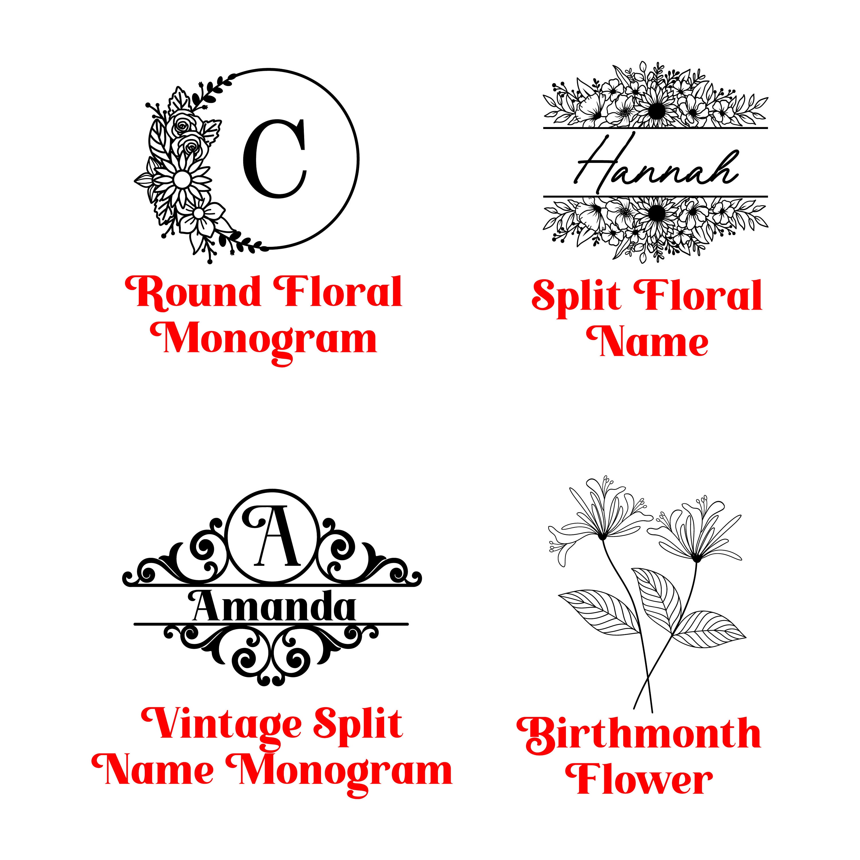 We have several designs to choose from. On the birth flowers, we do not include the name of the flower on the engraving unless requested. We do ask that you leave the personalization box blank if you choose a birthflower, but if you do include text for engraving, we’ll use our best judgement on how to set it up.